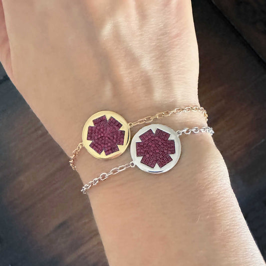 Medallion Medical ID Bracelet in Sterling Silver & Garnet