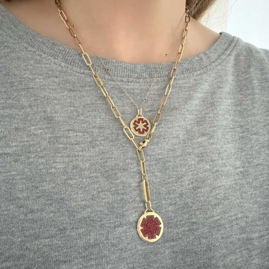 Gold Medical ID Necklace with Red EnamelRegular price $675.00 USDRegular priceUnit price / per$850.00 USDSale price $675.00 USDSale