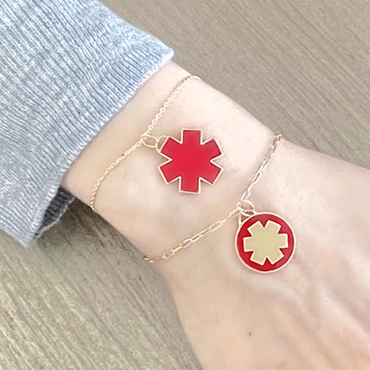 Choose from our stylish selection of medical alert ID charms, necklaces, & bracelets, all in solid gold or sterling silver with enamel & precious gemstones