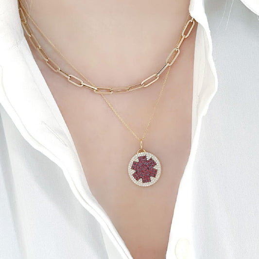 Gold Medical ID Necklace with Red Enamel Star of Life