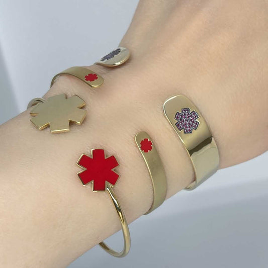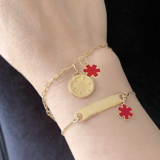 CHARMED Medical Jewelry's Gold Medical Alert Bracelet collection combines the elegance and luxurious materials of fine jewelry with the critical emergency protection of a traditional medical ID. Celebrate your personal style with our custom laser engraved gold medical bracelets, personalized to your taste, wardrobe, and lifestyle.
