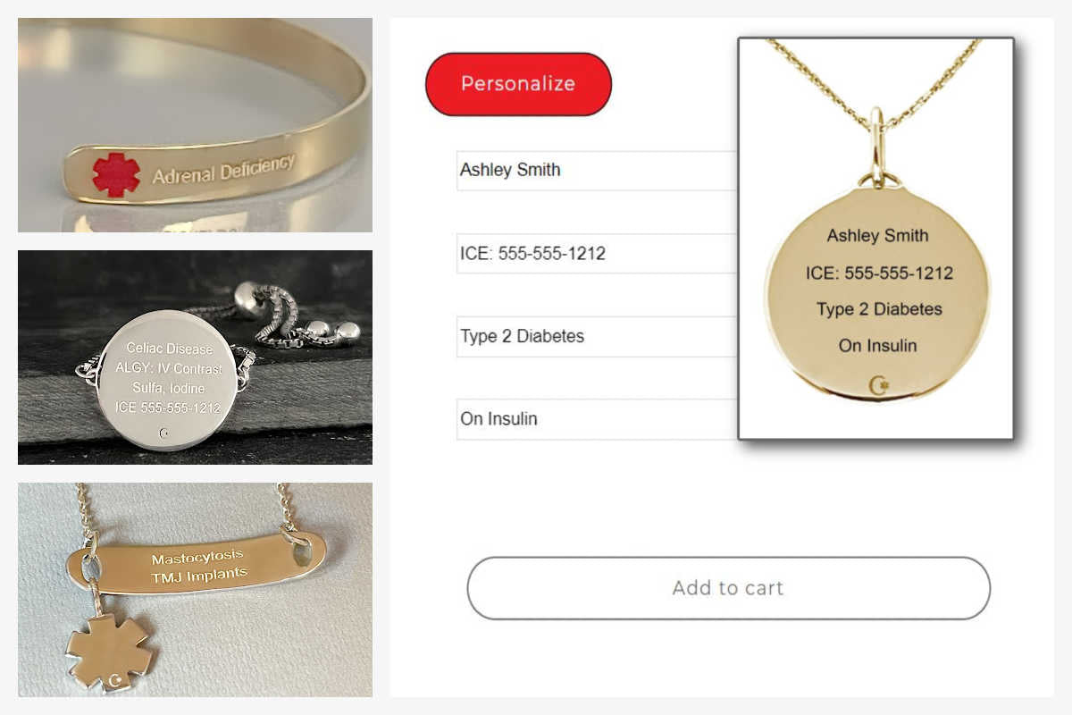 Our meticulously crafted collection of luxury medical alert jewelry encompasses modern