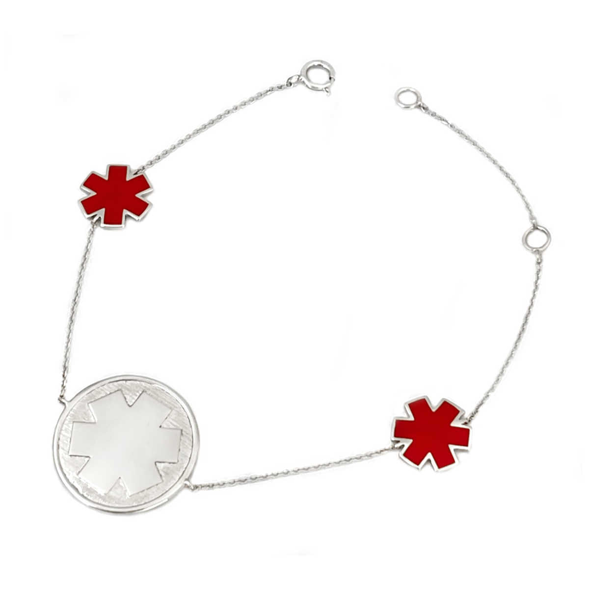 White Gold Medical ID Station Bracelet with Red Enamel
